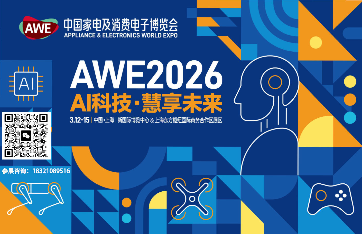 中国家电及消费电子博览会(Appliance&electronics World Expo,AWE),由中国家用电器协会创办于1992年,每年3月在上海举办。作为全球三大家电及消费电子展之一,AWE汇聚了全球最顶级的产品体验场景、贸易商洽机会、技术发展和企业战略交流价值、品牌传播声量、多维度用户人群、跨界交流平台、资本市场关注,是提升产业社会关注度和影响力、为参展品牌和合作伙伴全面赋能的重要平台